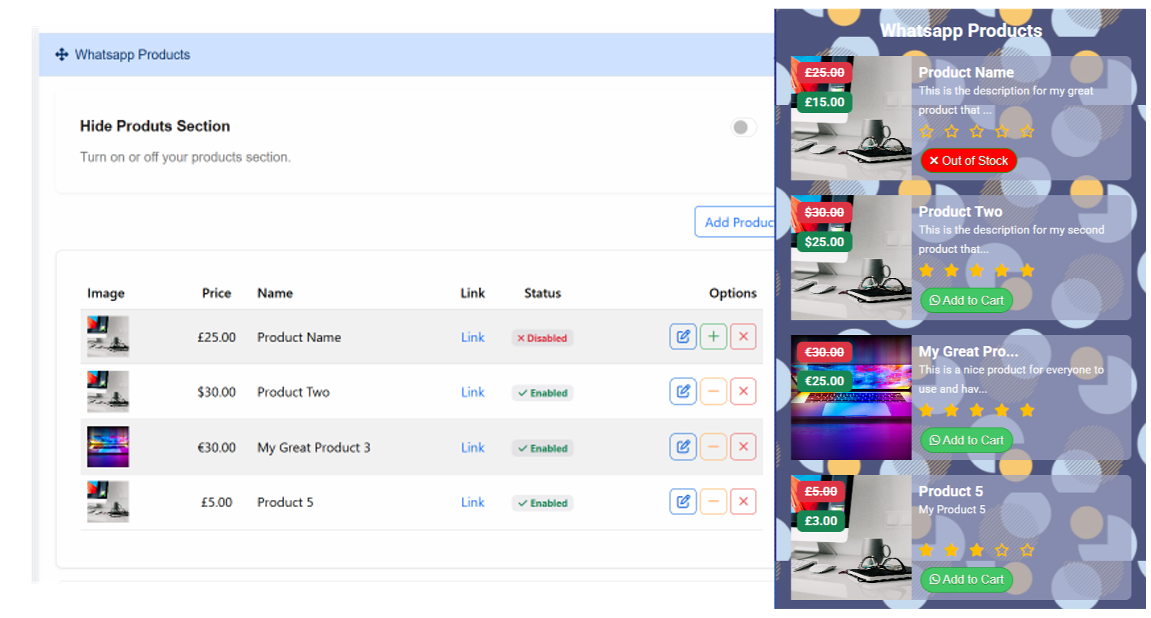 Its really simple to get started, simply create a bio link page with our bio link builder then add a products block section to your bio link page. This will allow you to add unlimited whatsapp products which your visitors can add to cart ready to checkout using your Whatsapp number.